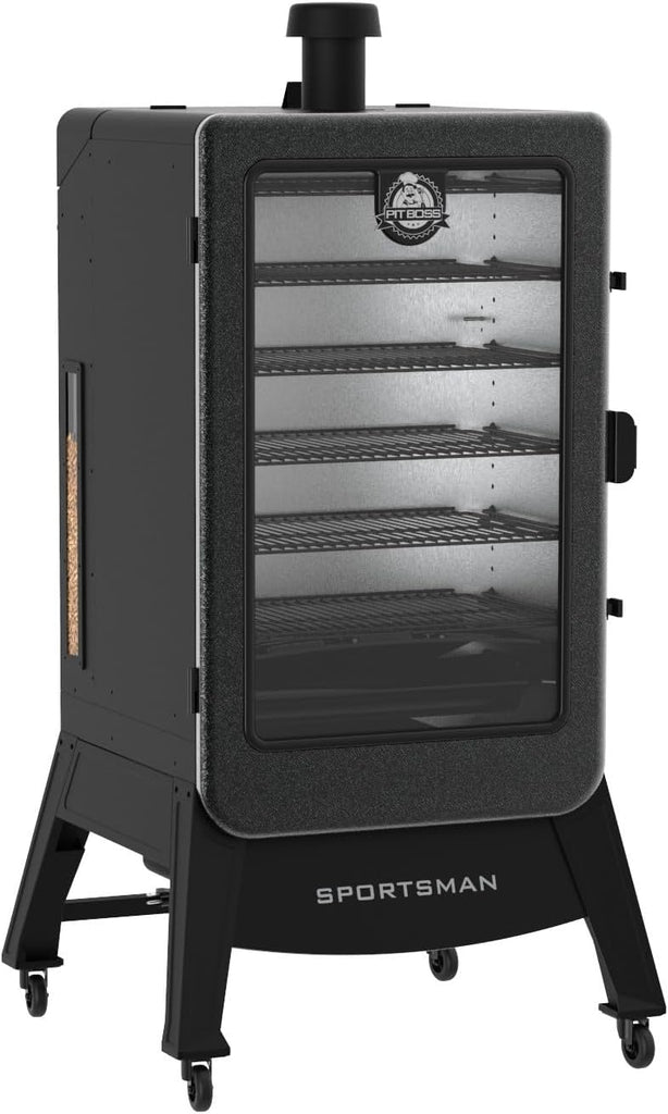 The Pit Boss® Sportsman Series 7-Series Vertical Wood Pellet Smoker delivers a powerful cooking experience for the true outdoorsman. Perfect for those who value the field-to-grill lifestyle, the Sportsman Series uses 100% all-natural hardwood pellets to masterfully smoke fish, game, jerky or whatever else your outdoor adventure brings you.